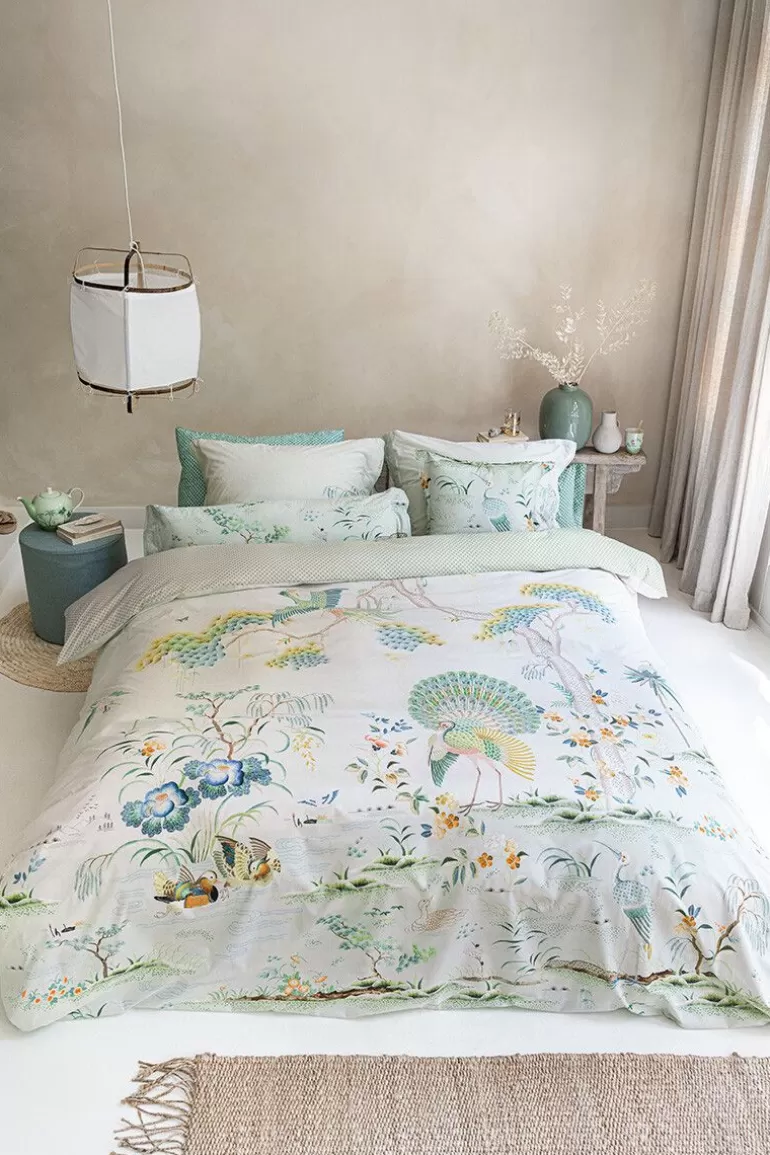 The Japonica White Rectangular Cushion Lets You Create A Luxurious Ambience In Any Bedroom. The Design Features A Sophisticated Landscape With Flowers And Trees With An Embroidered Look, Inspired By The Silk Kimonos Of Ancient Japan. This Elaborately Decorated Cushion Is A Real Eye-Catcher On Any Bed.