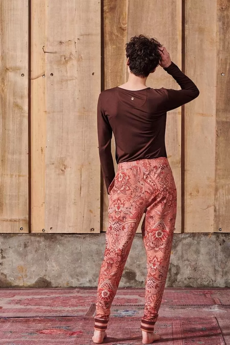 This Top With Long Sleeves In Terra Red Is Decorated With The Solid Design. The Top Has A Round Neckline.